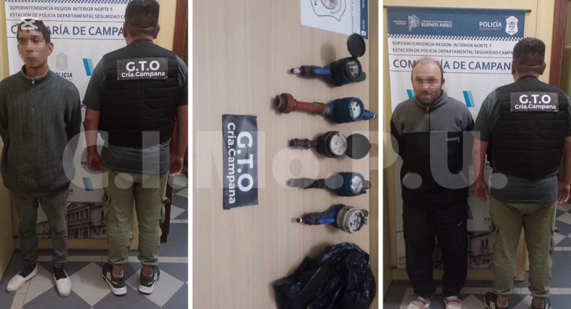 A raíz de ello, los individuos -de 28 y 37 años y con domicilio en el barrio de Otamendi- fueron detenidos bajo la causa fue caratulada “Hurto de medidores”. Interviene la Unidad Funcional de Instrucción y Juicio Nº 2 del Departamento Judicial Zárate – Campana.